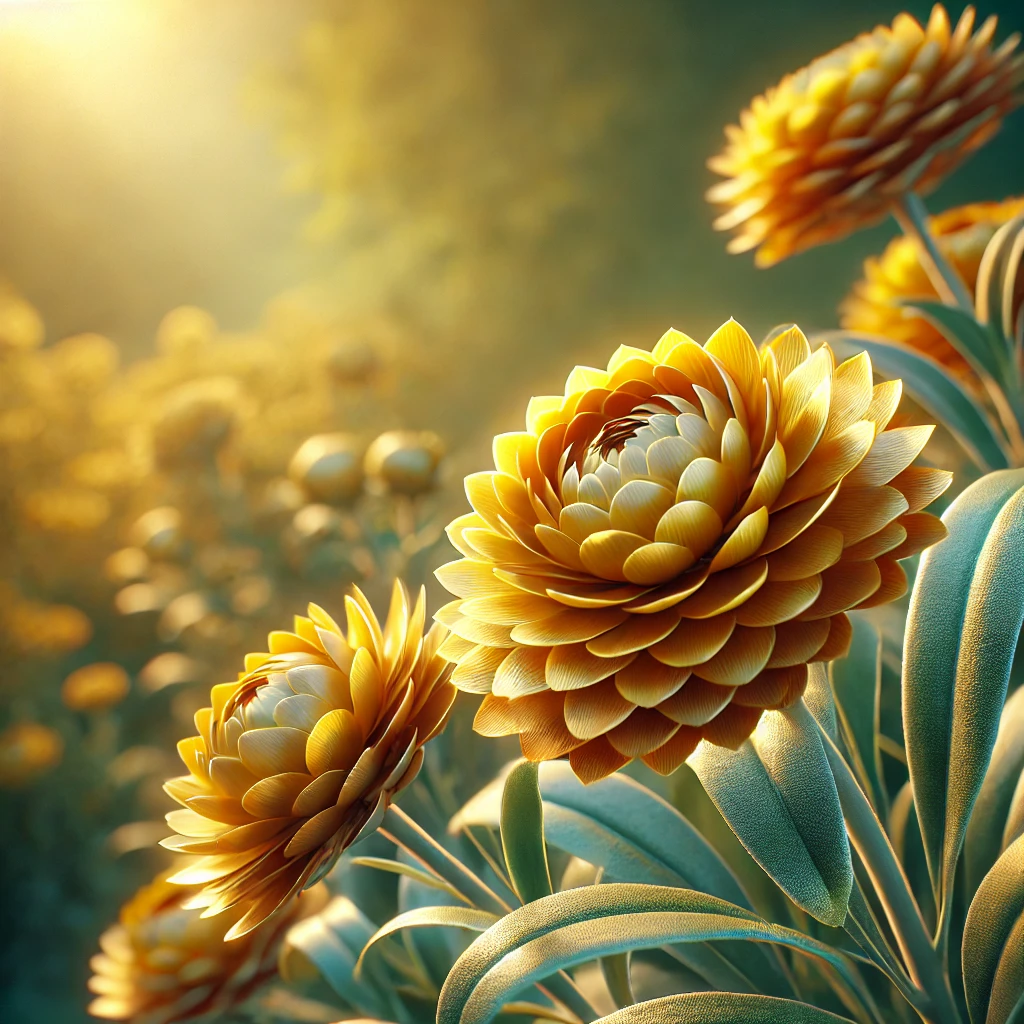 헬리크리섬은 지중해 연안에서 자라는 작고 예쁜 꽃이에요. 이 꽃은 '영원한 꽃(Everlasting Flower)', '이모르텔(Immortelle)'이라고도 불리는데, 이유는 시들지 않고 오래 유지되는 특징 때문이에요. 오일로 추출된 헬리크리섬은 이 독특한 특징을 그대로 담아 피부에 생기를 불어넣어주는 역할을 한답니다.