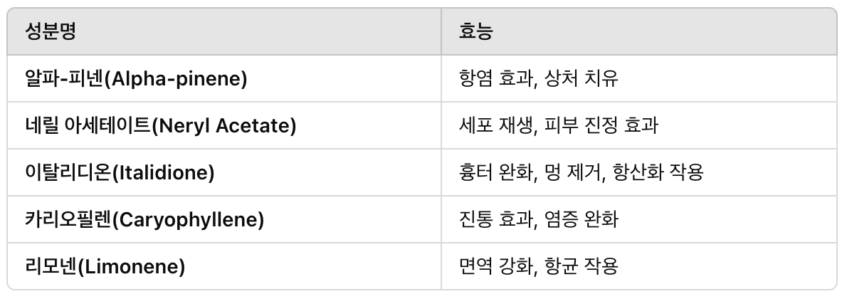 에버라스팅/ 이모르뗄/ 헬리크리섬 오일 성분